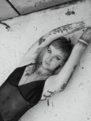 I have a petite figure with feminine curves, seductive long legs with thick thighs leading you up to a peachy generous ass, - a arching back, a thin waist pouring out to my sexy wide hips. Im adorned with creative tattoos, wide blue eyes and the face of a model.