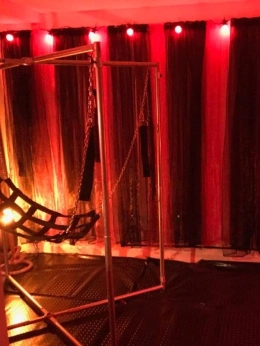 My sessions in my dungeon are intense. I am expert at reading the situation for maximum effect in an atmospheric space of moody lighting, gothic props and gently throbbing music. A sling is my centrepiece.